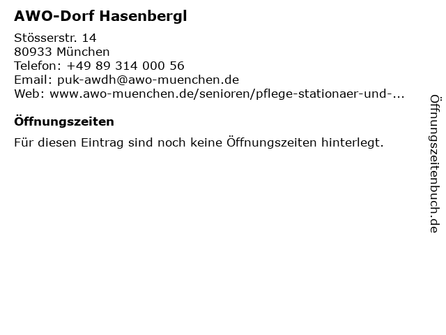 | Öffnungszeiten AWO-Dorf Hasenbergl in München anzeigen | |
