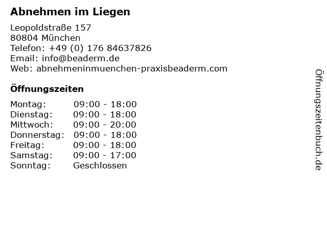 | Öffnungszeiten Abnehmen im Liegen in München anzeigen | |