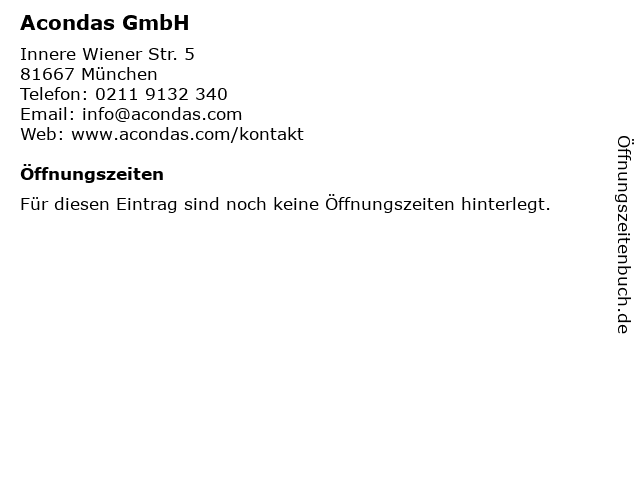 | Öffnungszeiten Acondas GmbH in München anzeigen | |