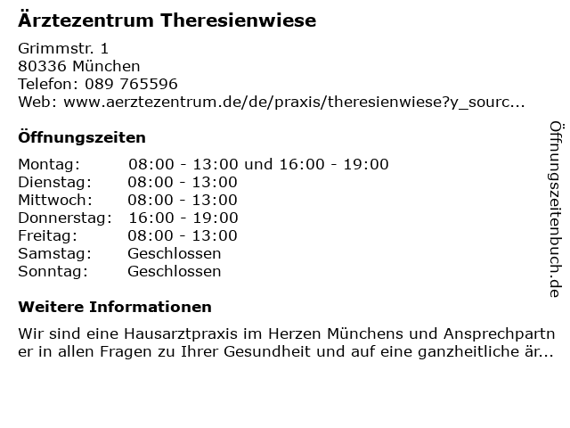 | Öffnungszeiten Ärztezentrum Theresienwiese in München anzeigen | |