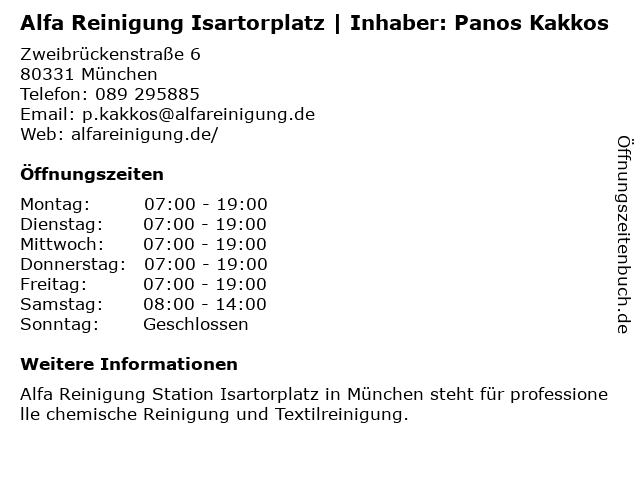Branchen & Suchbegriffe zu Alfa Reinigung Isartorplatz | Inhaber: Panos Kakkos:alfa, inhaber, isartorplatz, kakkos, panos, reinigung |