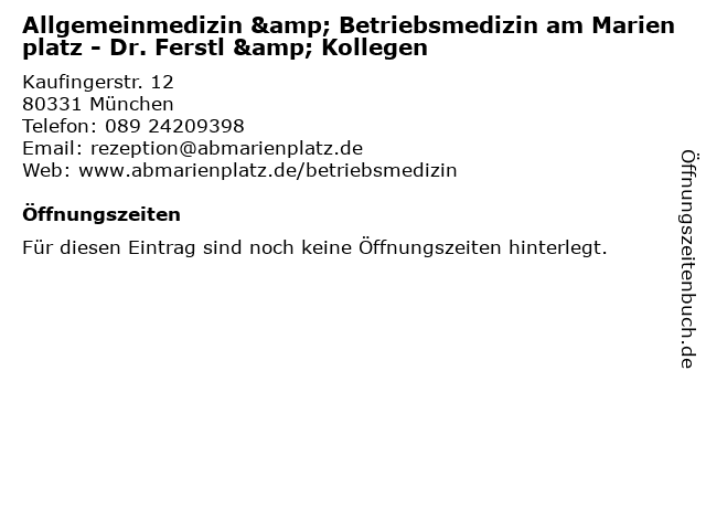 | Allgemeinmedizin & Betriebsmedizin am Marienplatz - Dr. Ferstl & Kollegen anrufen | |