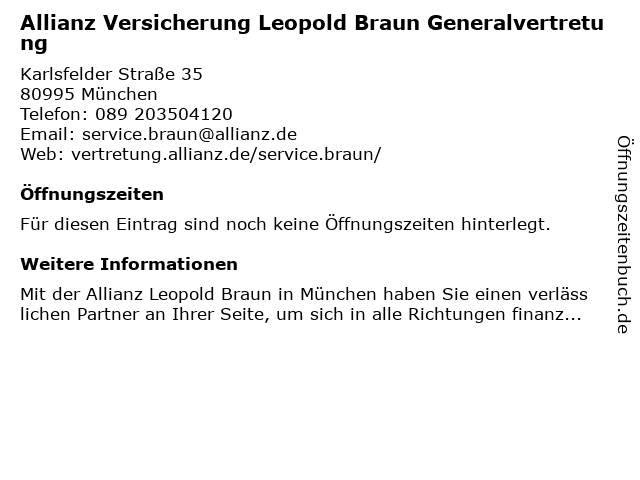 | Allianz Versicherung Leopold Braun Generalvertretung anrufen | |