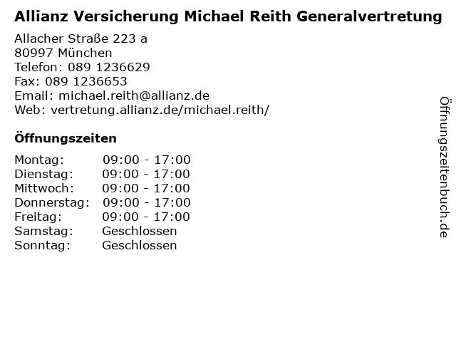 1 Hunner Johann Generalvertretung der Allianz Versicherungen (Entfernung: 3,14 km) Karl-Mangold-Str. 4, 81245 München 2 Brigitta Bauer Dr.med. Ute Bertheau-Reith u. Dr.med. Claudia Wehrig (Entfernung: 3,26 km) Schmaedelstr. 29, 81245 München 3 Allianz Generalvertretung Rolf-Peter Schapfl (Entfernung: 5,45 km) Josef-Frankl-Str. 51, 80995 München 4 Allianz Versicherung Roland Schmidt Generalvertretung (Entfernung: 6,79 km) Am Anger 2, 85757 Karlsfeld 5 Werner Kottmair Allianz Agentur Generalvertretung (Entfernung: 6,95 km) Am Einfang 13, 82166 Gräfelfing 6 |