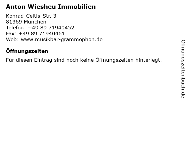 | Öffnungszeiten Anton Wiesheu Immobilien in München anzeigen | |