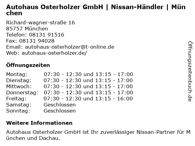 Branchen & Suchbegriffe zu Autohaus Osterholzer GmbH | Nissan-Händler | München:autohaus, autohändler, autowerkstatt, händler, nissan, oldtimer-händler, osterholzer |