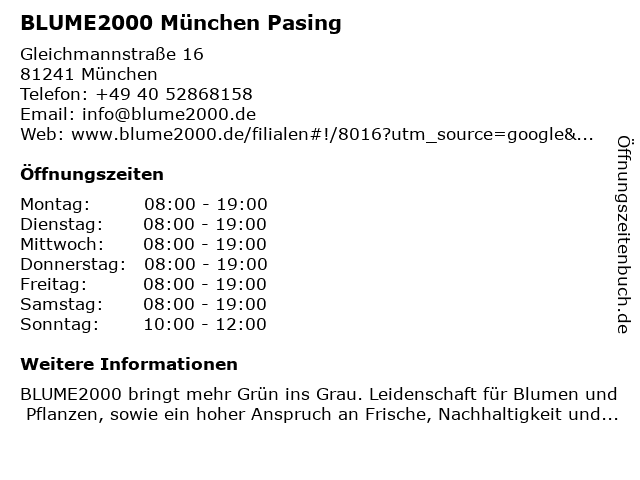 | Öffnungszeiten BLUME2000 München Pasing in München anzeigen | |
