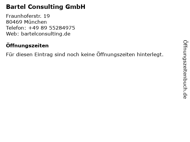 | Öffnungszeiten Bartel Consulting GmbH in München anzeigen | |