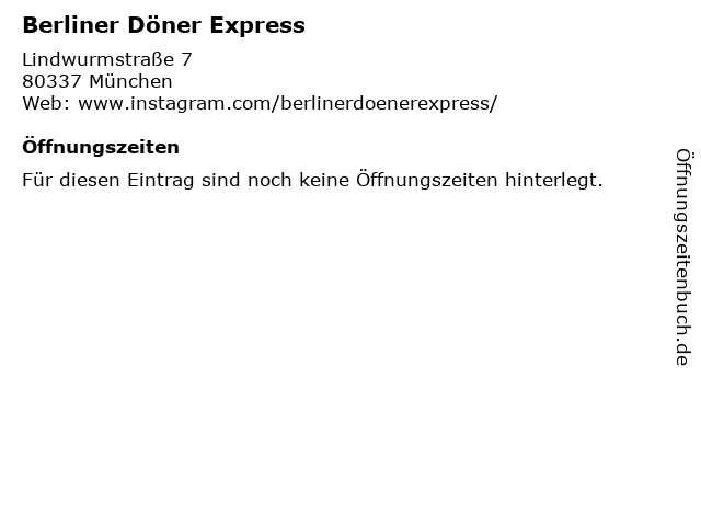 | Öffnungszeiten Berliner Döner Express in München anzeigen | |