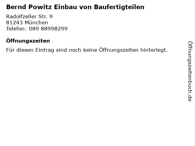 | Bernd Powitz Einbau von Baufertigteilen anrufen | |