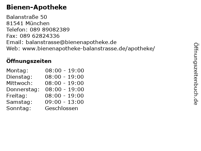 | Öffnungszeiten Bienen-Apotheke in München anzeigen | |