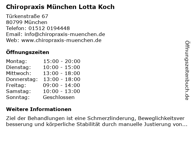 Branchen & Suchbegriffe zu Chiropraxis München Lotta Koch:chiropraxis, koch, lotta |