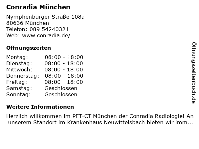 | Öffnungszeiten Conradia München in München anzeigen | |