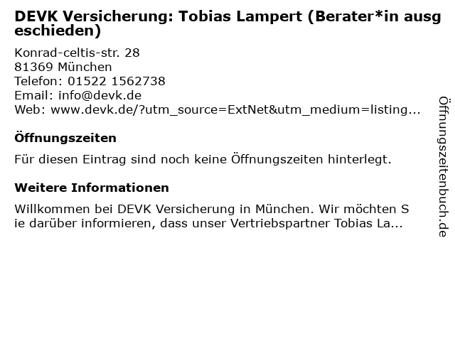 DEVK Versicherung: Tobias Lampert (Berater*in ausgeschieden) anrufen | |