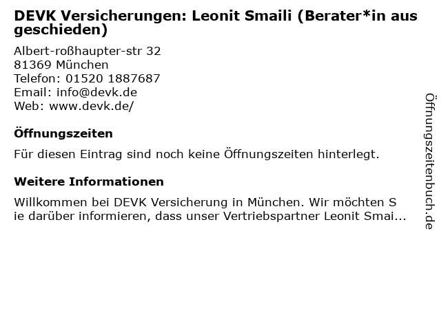 | DEVK Versicherungen: Leonit Smaili (Berater*in ausgeschieden) anrufen | |