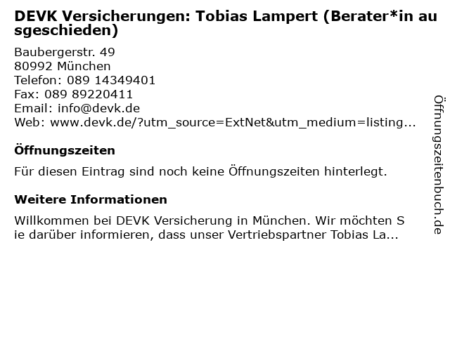 | DEVK Versicherungen: Tobias Lampert (Berater*in ausgeschieden) anrufen | |