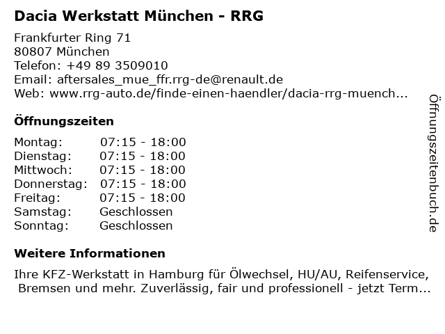 4 Dacia Werkstatt München Trudering - RRG (Entfernung: 11,49 km) Wasserburger Landstraße 143, 81827 München 6 |