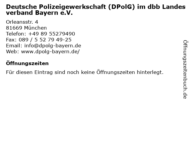 | Deutsche Polizeigewerkschaft (DPolG) im dbb Landesverband Bayern e.V. anrufen | |