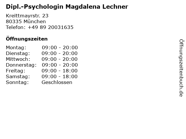 Branchen & Suchbegriffe zu Dipl.-Psychologin Magdalena Lechner:dipl., lechner, magdalena, psychologin, psychotherapeut |