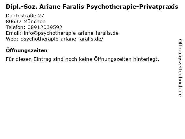 | Dipl.-Soz. Ariane Faralis Psychotherapie-Privatpraxis anrufen | |