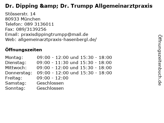 Öffnungszeiten Dr. Dipping & Dr. Trumpp Allgemeinarztpraxis in München anzeigen