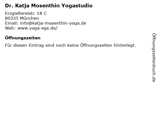 | Öffnungszeiten Dr. Katja Mosenthin Yogastudio in München anzeigen | |