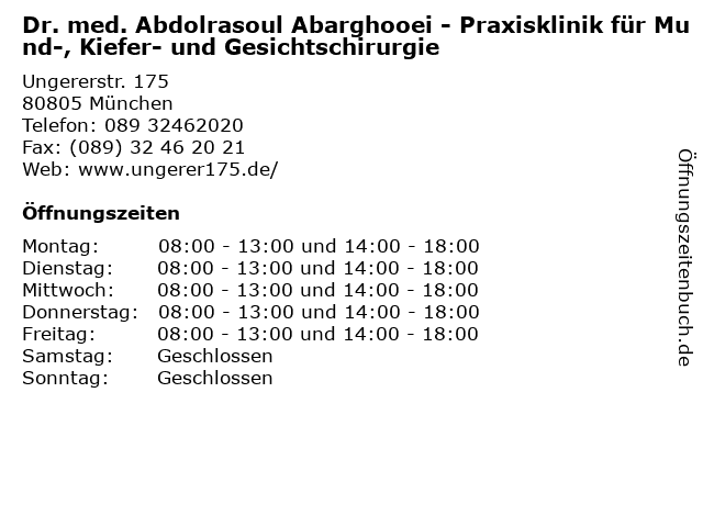 Branchen & Suchbegriffe zu Dr. med. Abdolrasoul Abarghooei - Praxisklinik für Mund-, Kiefer- und Gesichtschirurgie:abarghooei, abdolrasoul, arzt, dr., gesichtschirurgie, kiefer, med., mund, mund-kiefer-gesichtschirurgie, operationen, praxisklinik, sprechzeiten, zahn, ästhetische |