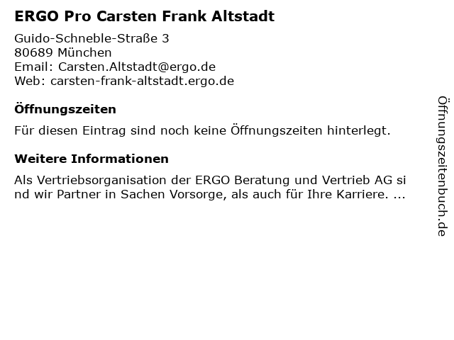 | Öffnungszeiten ERGO Pro Carsten Frank Altstadt in München anzeigen | |