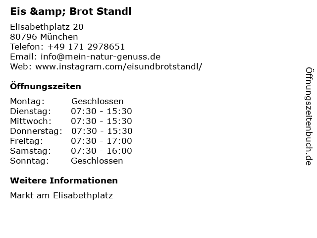 | Öffnungszeiten Eis & Brot Standl in München anzeigen | |