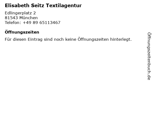 Branchen & Suchbegriffe zu Elisabeth Seitz Textilagentur:elisabeth, handelsvermittler und -vertreter, seitz, textilagentur |