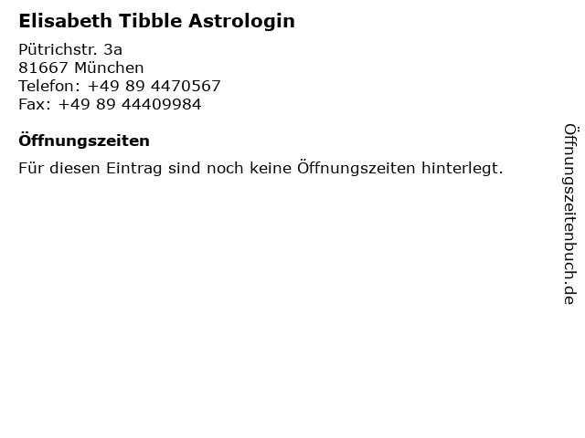 | Öffnungszeiten Elisabeth Tibble Astrologin in München anzeigen | |
