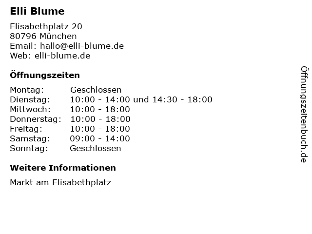 | Öffnungszeiten Elli Blume in München anzeigen | |