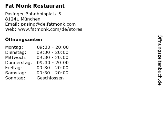 | Öffnungszeiten Fat Monk Restaurant in München anzeigen | |