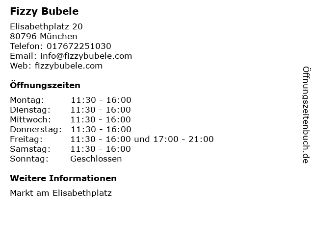 | Öffnungszeiten Fizzy Bubele in München anzeigen | |