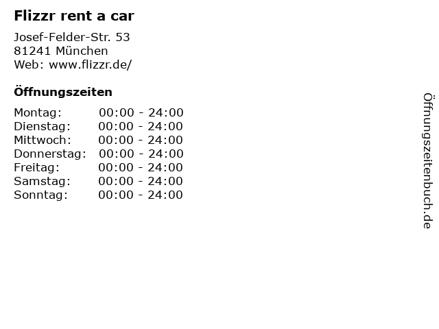 | Öffnungszeiten Flizzr rent a car in München anzeigen | |