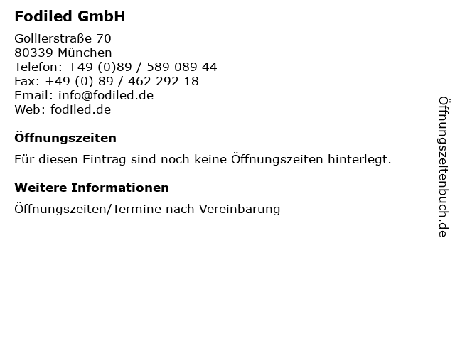 | Öffnungszeiten Fodiled GmbH in München anzeigen | |