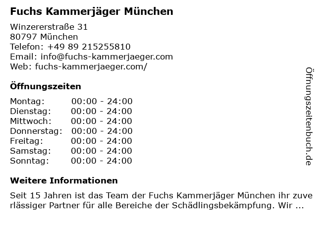 | Öffnungszeiten Fuchs Kammerjäger München in München anzeigen | |