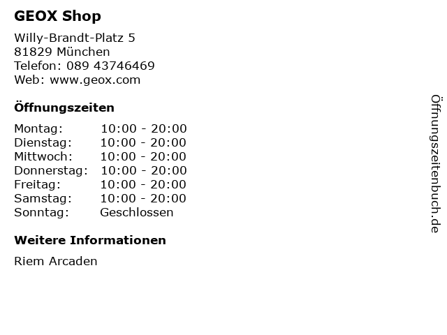 | Öffnungszeiten GEOX Shop in München anzeigen | |