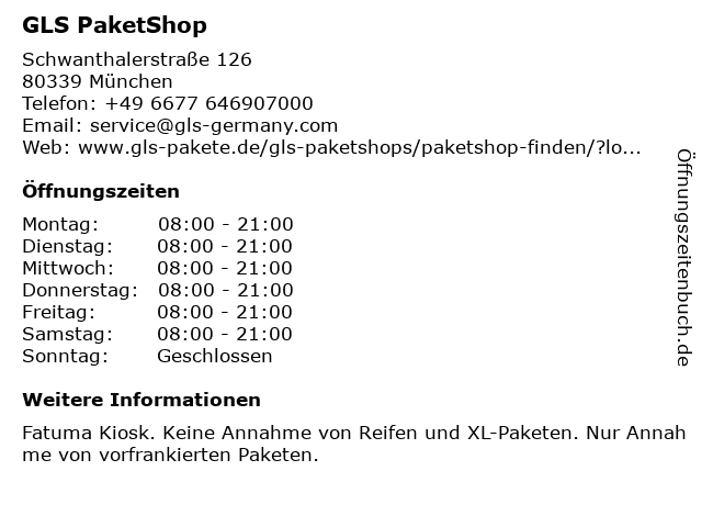 Öffnungszeiten GLS PaketShop in München anzeigen