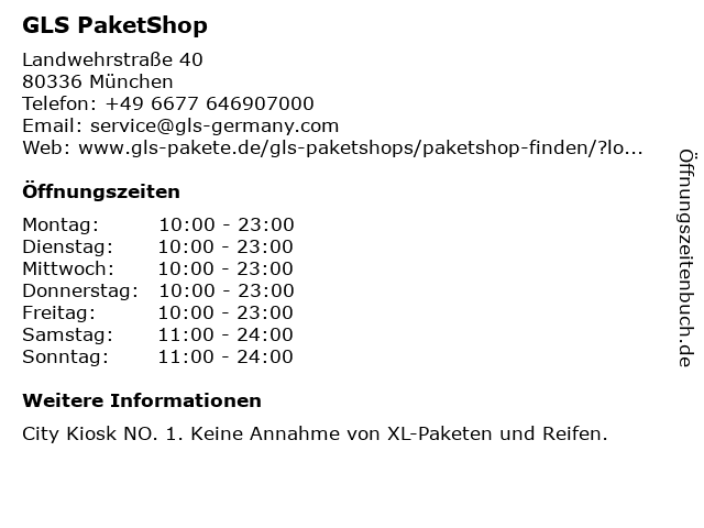 | Öffnungszeiten GLS PaketShop in München anzeigen | |