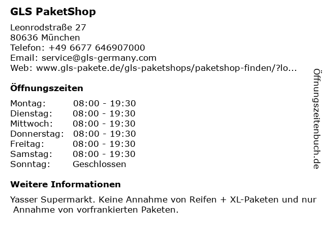 Öffnungszeiten GLS PaketShop in München anzeigen