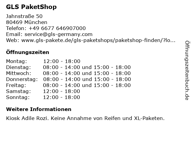 | Öffnungszeiten GLS PaketShop in München anzeigen | |