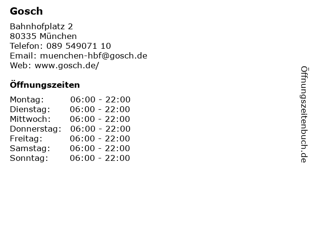 | Öffnungszeiten Gosch in München anzeigen | |