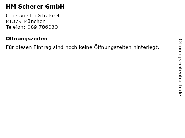 | Öffnungszeiten HM Scherer GmbH in München anzeigen | |