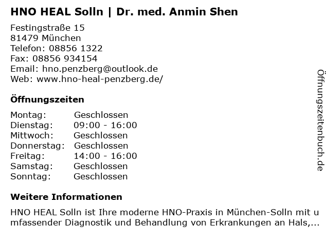 Branchen & Suchbegriffe zu HNO HEAL Solln | Dr. med. Anmin Shen:anmin, dr., heal, hno, med., shen, solln, ärzte |