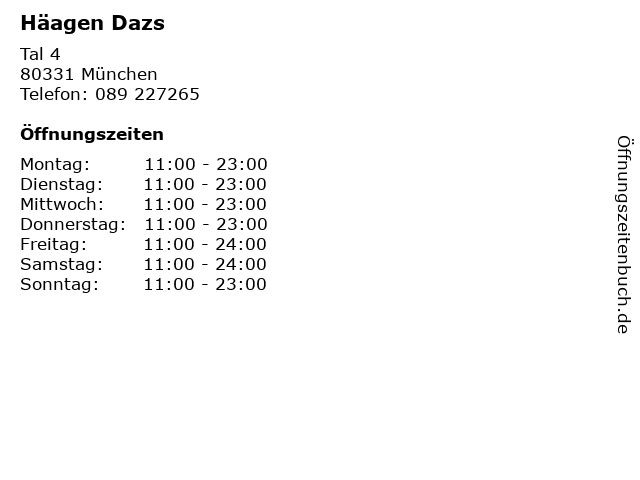 | Öffnungszeiten Häagen Dazs in München anzeigen | |