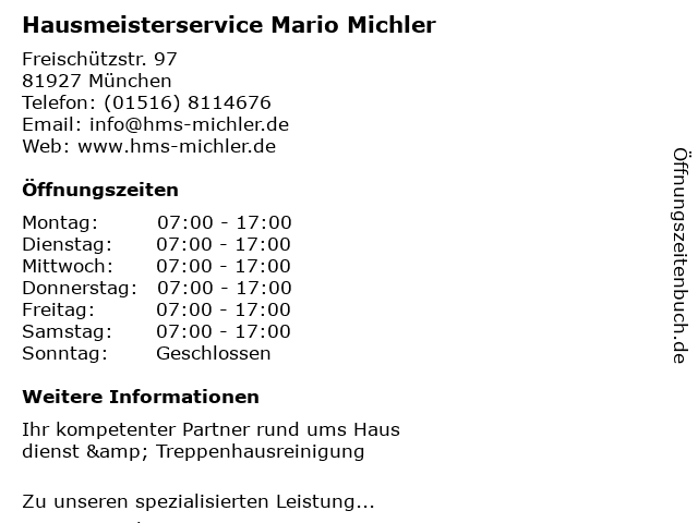 3 Labriola Hausmeisterservice & Gebäudereinigung (Entfernung: 1,13 km) Oberföhringer Straße 226, 81925 München 6 |
