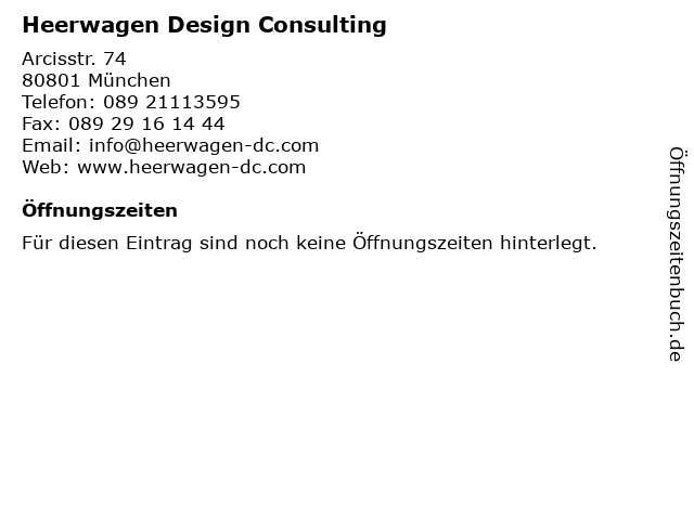 | Öffnungszeiten Heerwagen Design Consulting in München anzeigen | |
