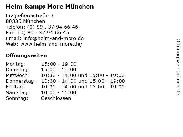 | Öffnungszeiten Helm & More München in München anzeigen | |