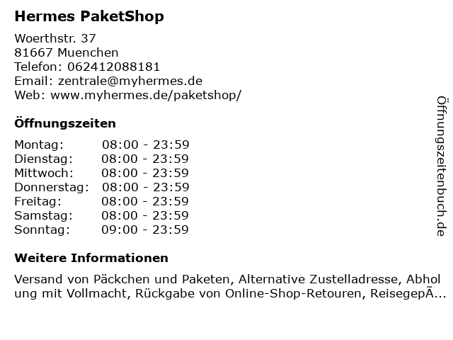 | Öffnungszeiten Hermes PaketShop in Muenchen anzeigen | |